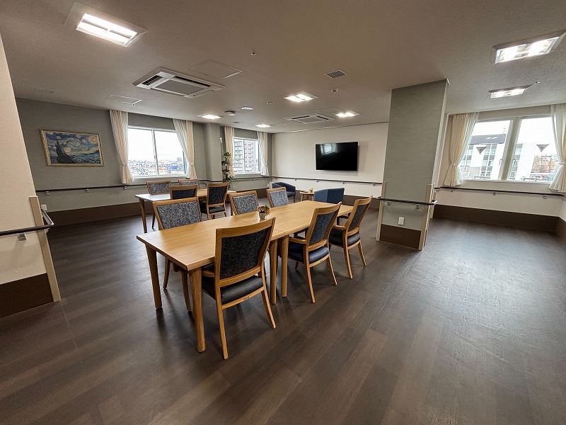 各フロアにある食堂がリビングとしてもご活用いただけ、レクリエーションやお茶の時間など、ご入居者同士が顔を合わせ自然と交流が広がる場所となります。私たち木下の介護の「担当ヘルパー」が日々にそっと寄り添い、ご家族も気軽に訪れていただける「第2の我が家」として、安心とぬくもりある暮らしを共に育んでまいります。